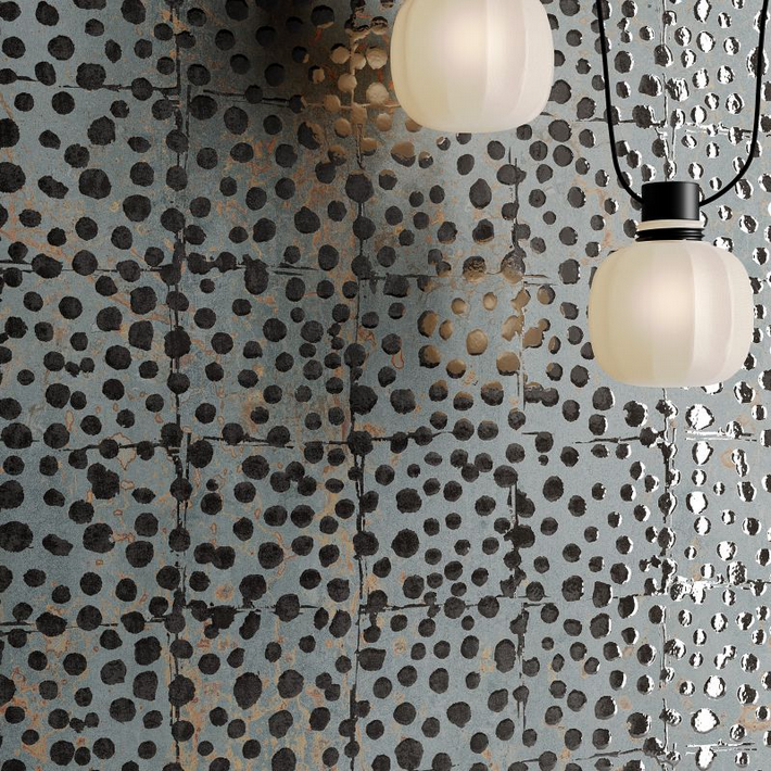 Piastrella Poetry Decor Pois Metal Verdigris nat. 20x20 in gres porcellanato in prima scelta ABK group (N.B. il prezzo si intende a MQ)