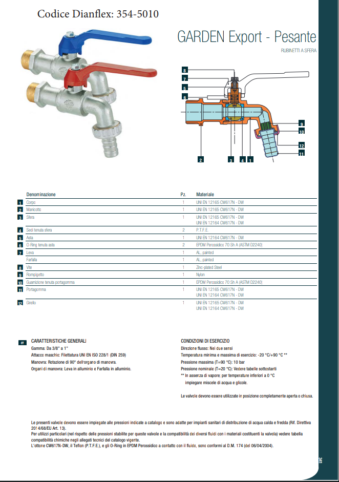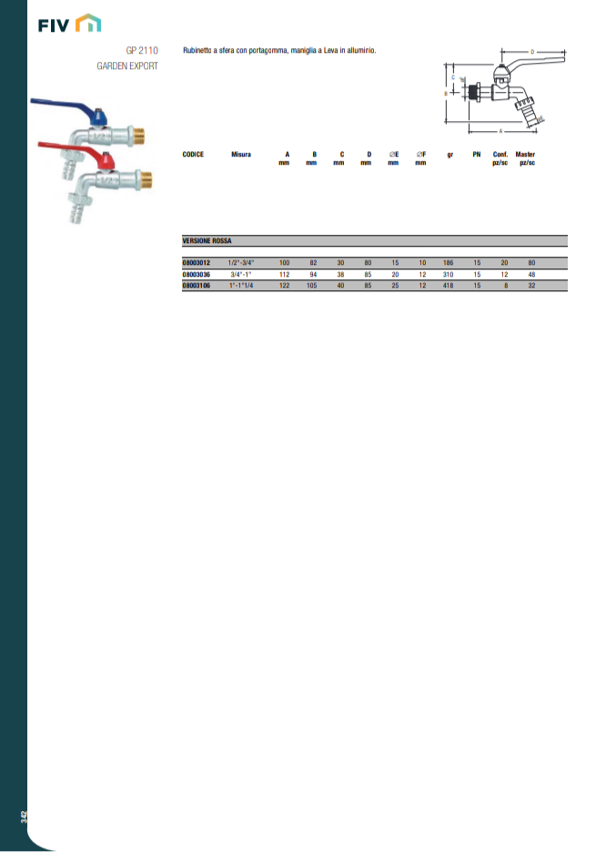 Ball valve with hose holder and red lever 1/2'' F-brico. Code 354-5010-F04 RA1/2