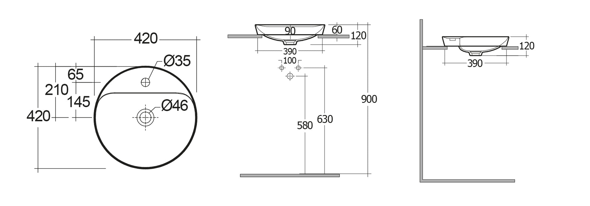 Lavabo ad incasso tondo monoforo 42x42 bianco Rak Variant COD. 185-RNSTF-42