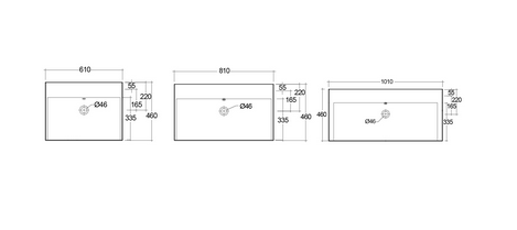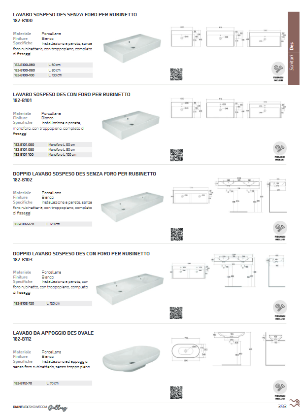 Lavabo sospeso senza foro per rubinetto L.80 cm Des Rak COD. 182-B100-080