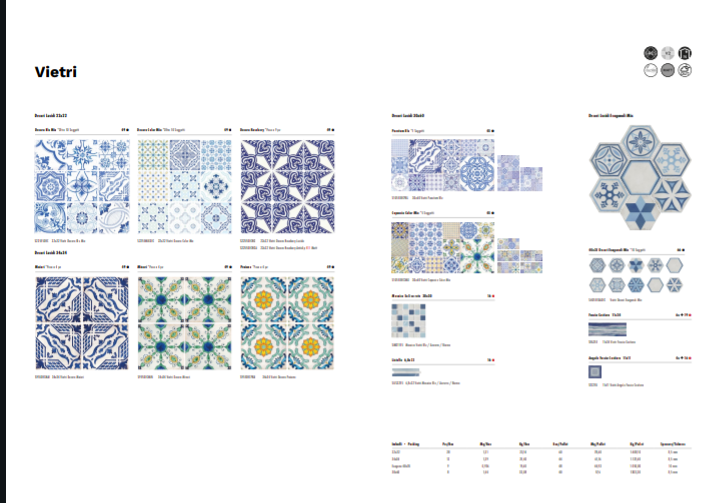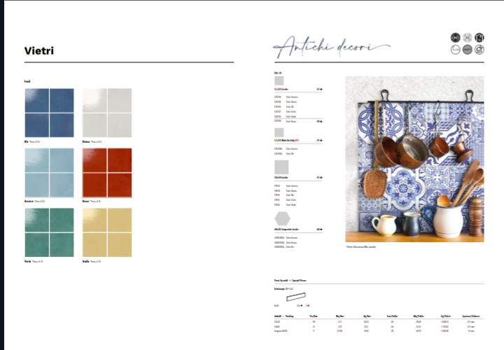 La Collezione in Gres Porcellanato Vietri di Savoia Italia si ispira alle Maioliche tradizionali Partenopee e vuole essere un omaggio all`artigianato di queste bellissime terre ricche di storia e famose in tutto il mondo. Le superfici vissute, i bordi irregolari e i colori ispirati dal mare donano un design tradizionale ma allo stesso tempo ricercato. Una serie importante, dallo stile sempre attuale, resa unica dai favolosi decori Effetto Maioliche utilizzabili su grandi superfici o abbinabili sapientemente a materiali e design differenti, come l`effetto legno o il cemento, per un look moderno.