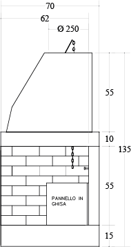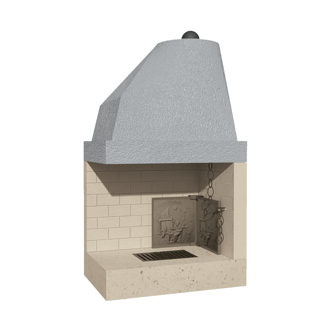 Caminetto prefabbricato a legna a focolare aperto completo di: parafiamma in ghisa (9 kg), valvola fumi, vaschetta raccogli cenere e griglia in ghisa. Struttura realizzata in conglomerato cementizio alleggerito. Focolare realizzato in refrattario ad alto tenore di allumina. Posizionabile sia ad angolo che a parete, ideale per la cottura di cibi ed arrosti. REVERSIBILE: In fase di installazione è possibile scegliere se installare il caminetto con apertura destra o sinistra.