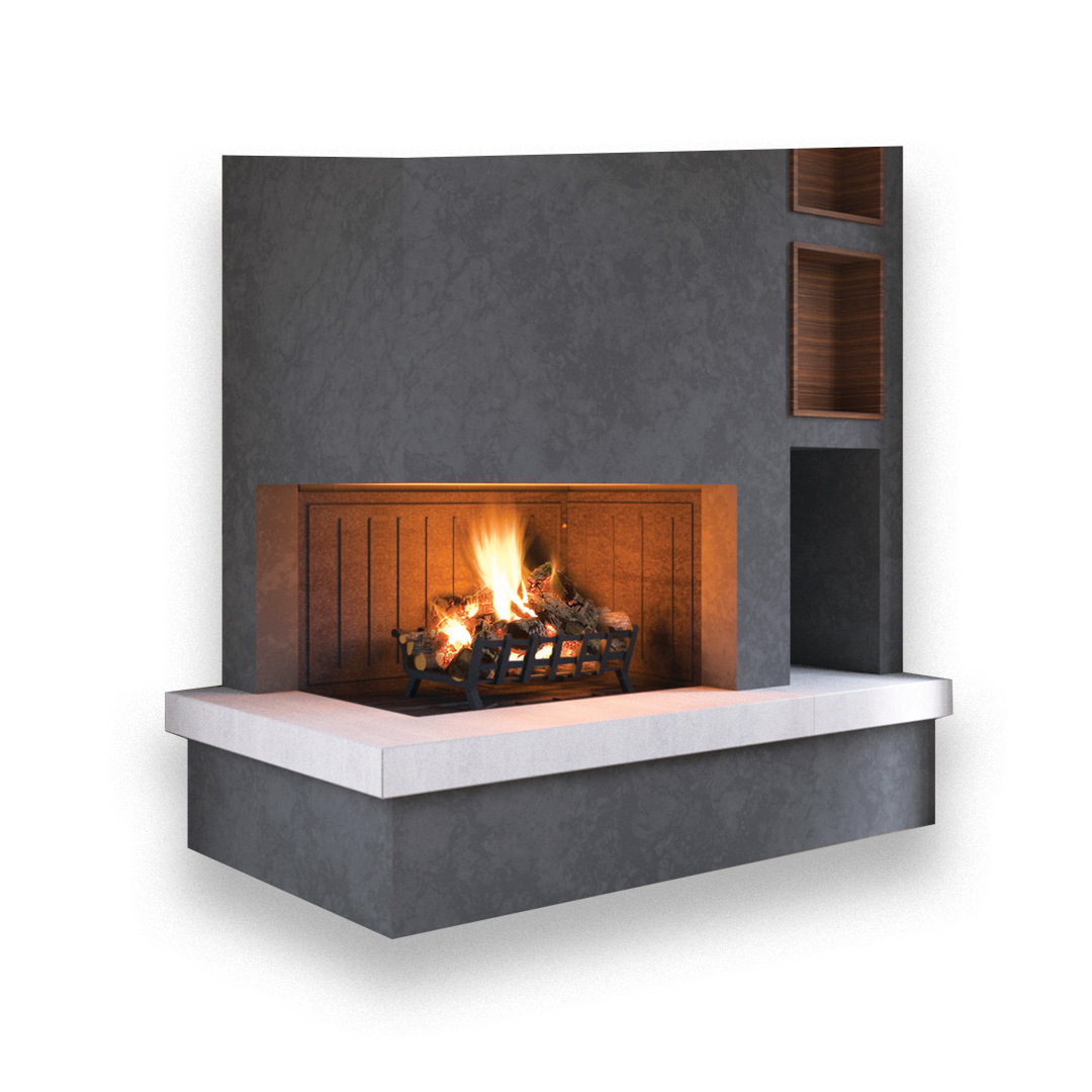 Disponibile di serie per i seguenti focolari: DS 90 TGH - DS 100 TGH - DS 90 REF - DS 100 REF In foto soglia realizzata in Ceramica Metallo perla; Sottogrado con supporto di serie da rifinire e verniciare in opera. ESCLUSE PARTI IN LEGNO