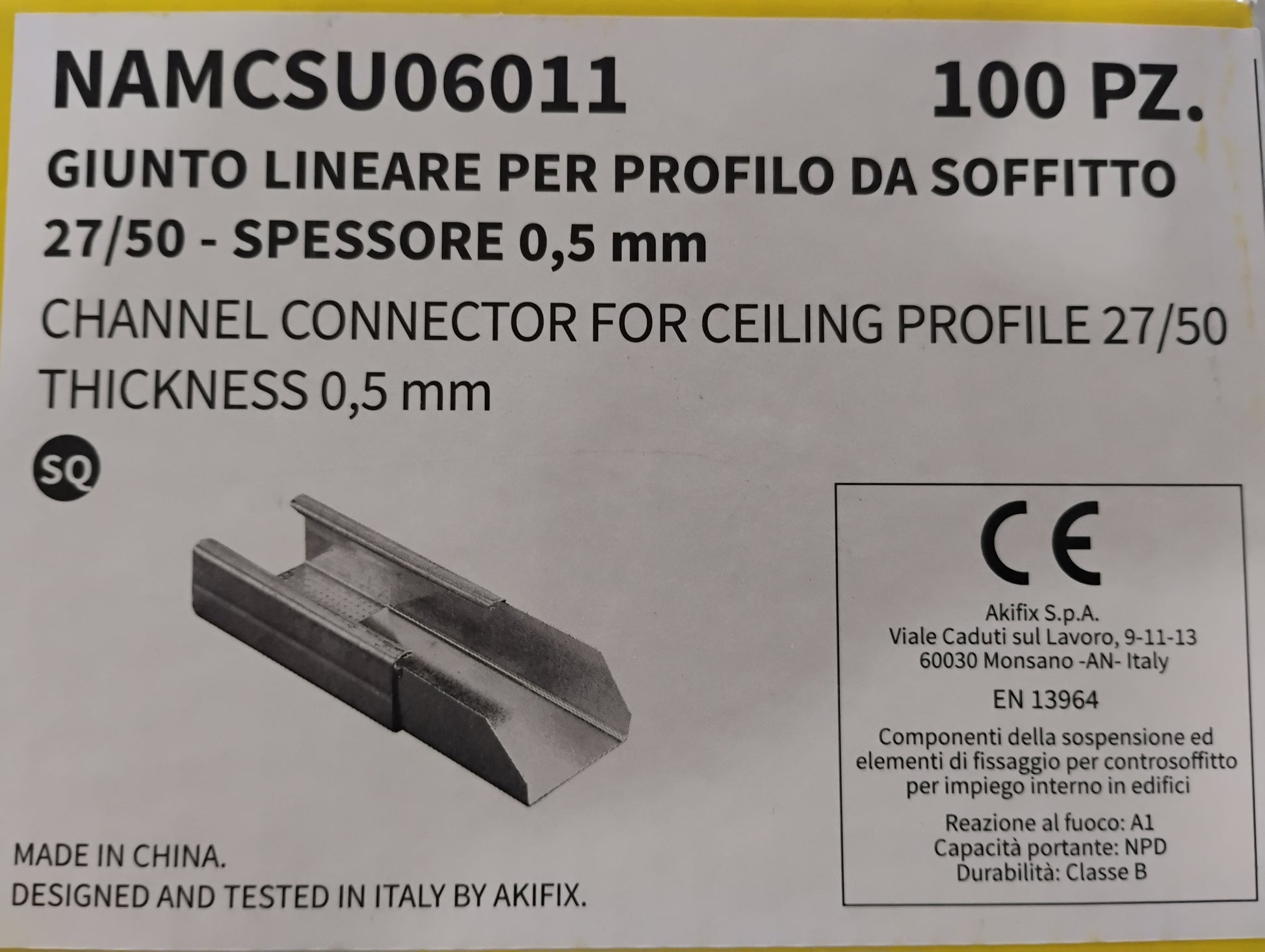 Giunto Lineare per profilo da soffitto 27/50 Cartongesso Cod. S 3256