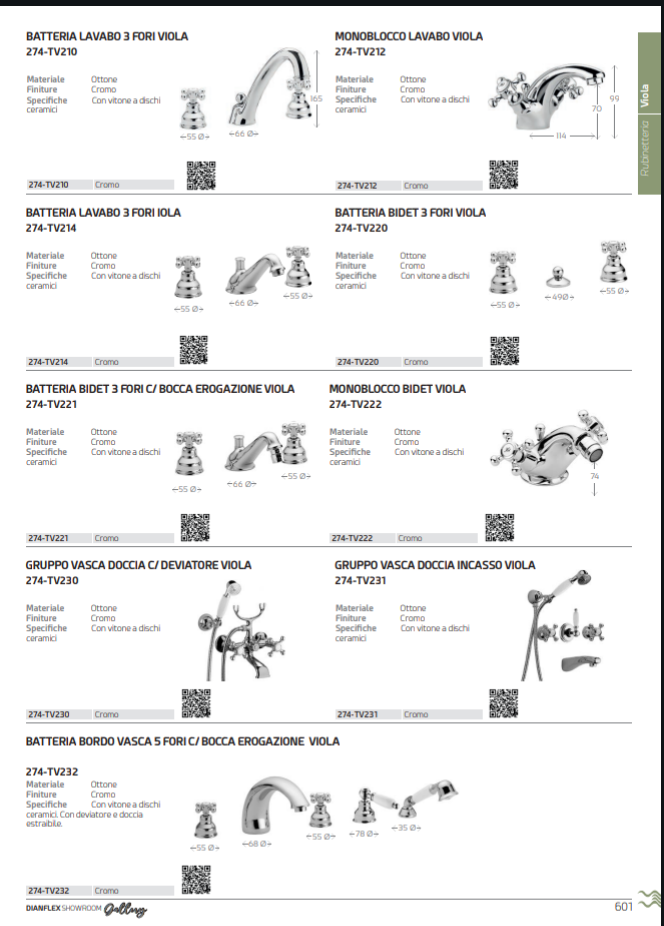 Gruppo Vasca Doccia con Deviatore Cromo Serie Viola Paffoni Cod. 274-TV230