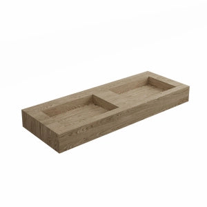 Articoli della composizione: Lavabo HPL 120 a 2 vasche Rovere naturale senza fori rubinetteria (fori da praticare) Coppia staffe L.40 (x2) Mensolone Ikon 120 in legno Verde opaco Specchio Smart 120 H.70 retroilluminato led