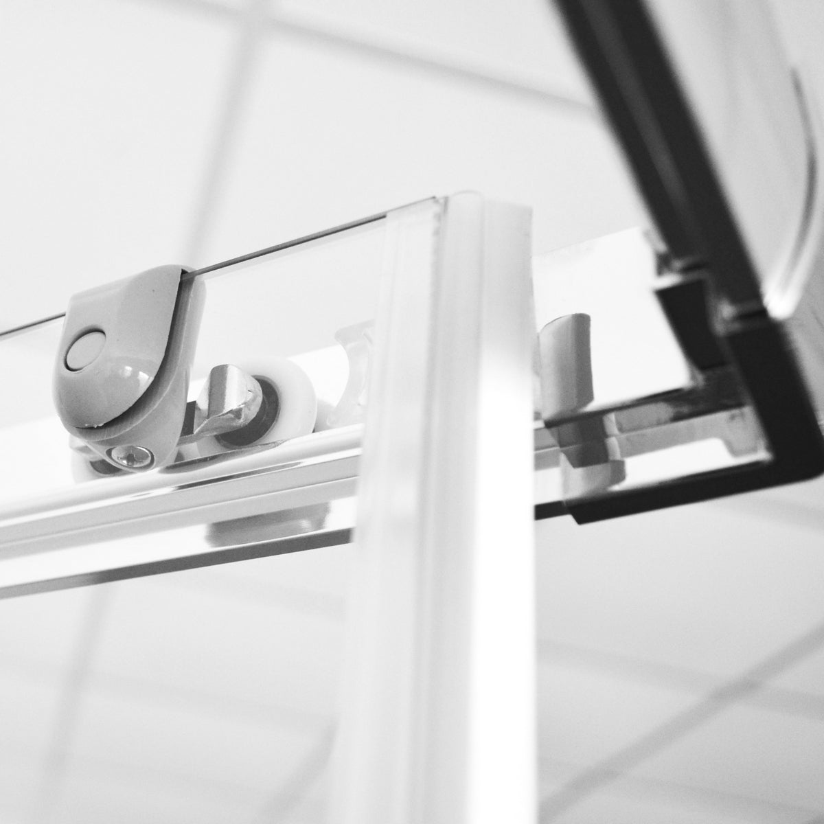 Box reversibile, Cristallo 6 mm con apertura ad ante scorrevoli in vetro temperato e chiusura magnetica. Vetro trasparente, grigio fumè o stampato C. H.190 cm. Conforme agli standard EN 14428:2004+A1:2008. ATTENZIONE: Per completare un box ad angolo bisogna ordinare 2 lati anche di misure diverse. (Es. 70x90). Consultare la scheda tecnica per le finiture disponibili. Da assemblare.
