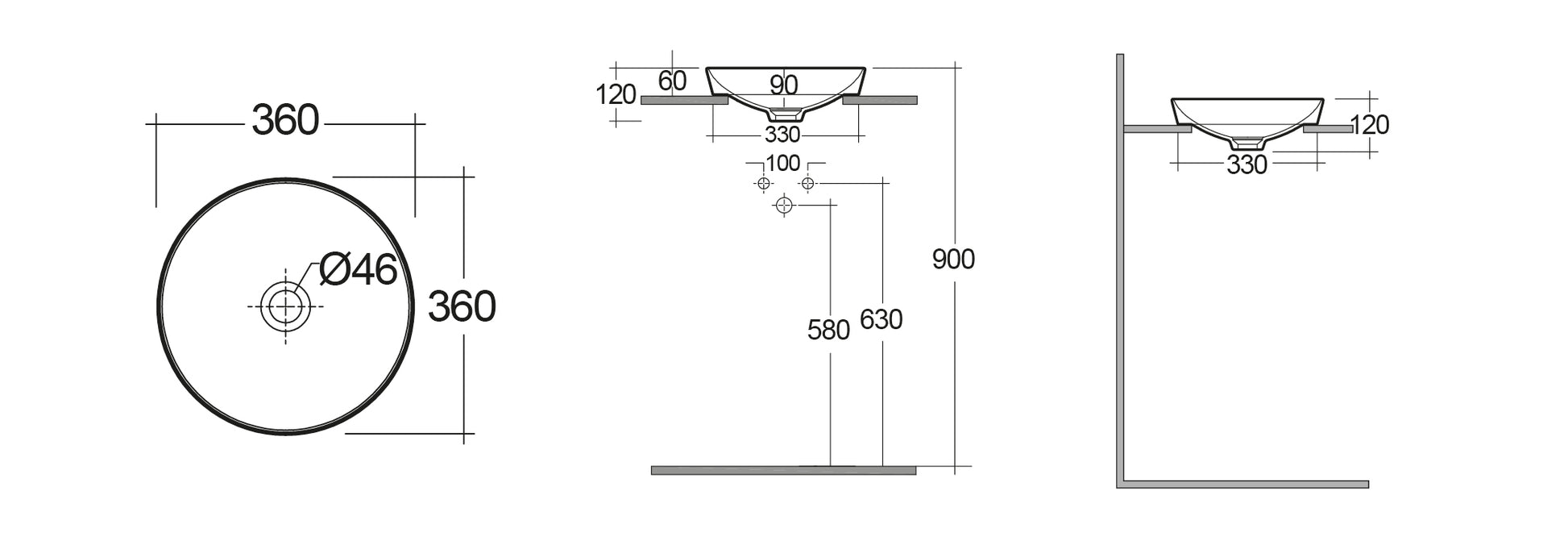 Lavabo ad incasso tondo senza foro 36x36 bianco Rak Variant COD. 185-RNST-36