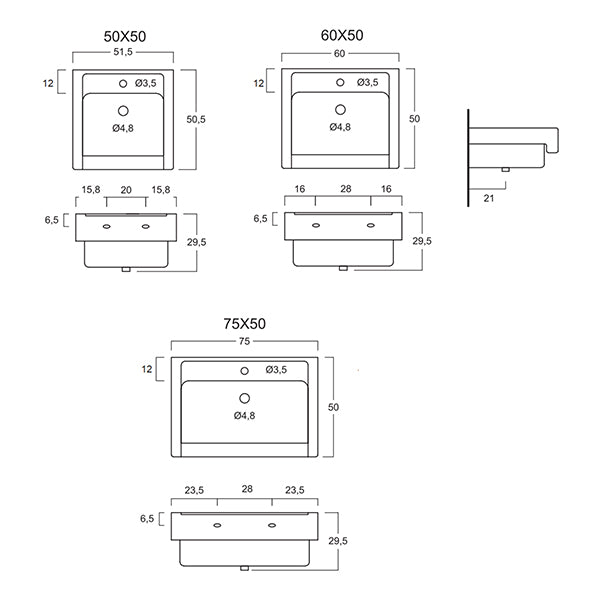 Lavabo in Ceramica 75x50 Xilon COD 185-VX95-75