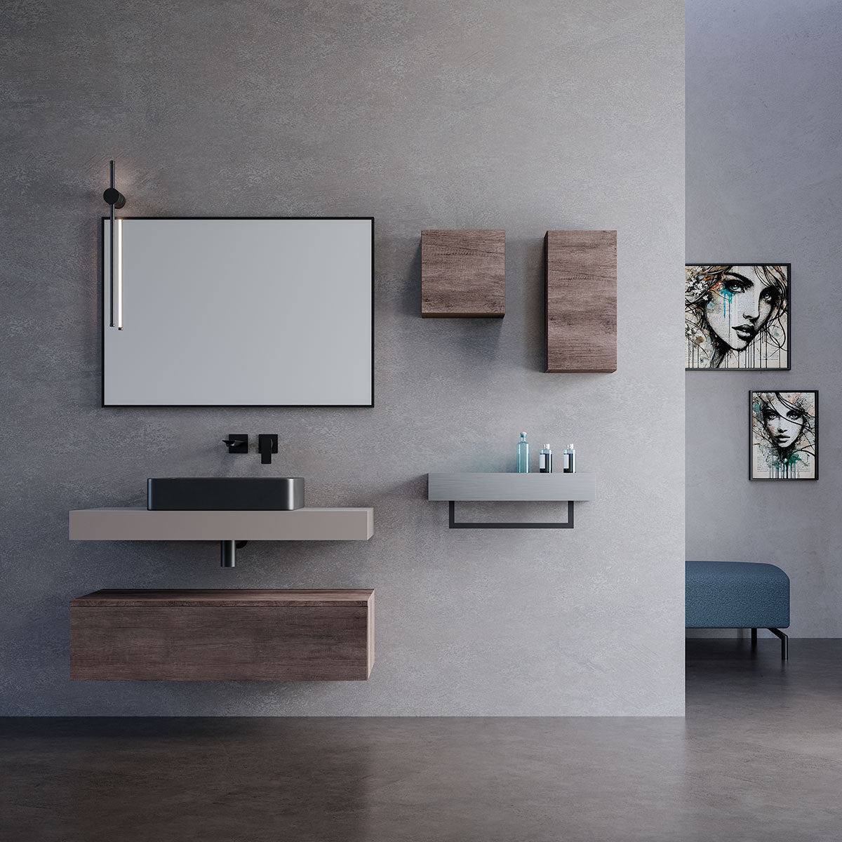 MOB1596 Mensola legno porta oggetti 60 Metal grafite