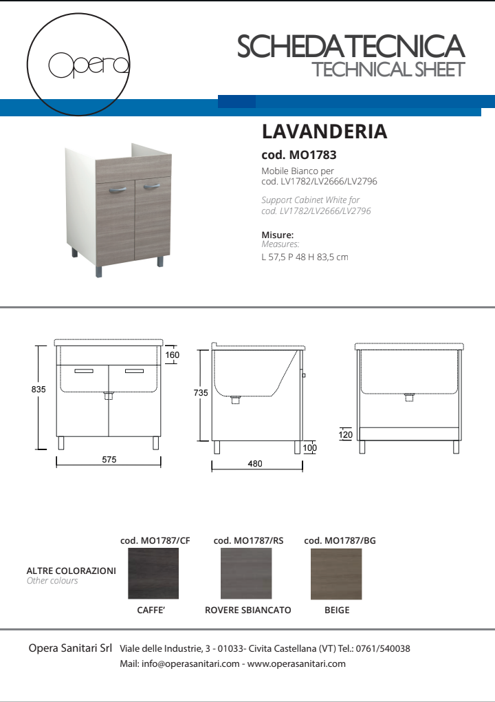 Mobile Lavatoio D'arredo 60X50 Opera Composto da Lavabo/Lavatoio LV2796 e da Mobile MO1783CF Colore Caffe'