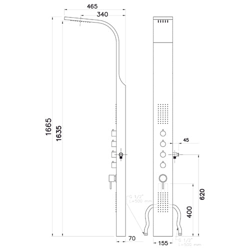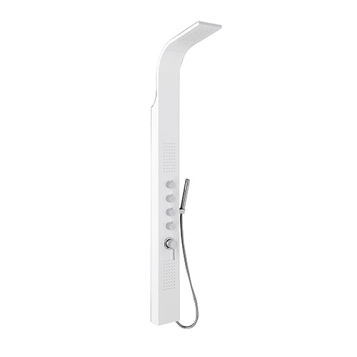 Parete attrezzata multifunzione modello Danubio realizzata in alluminio bianco, dimensioni L 15.5 x H 166.5 x P 46.5 cm, nr. 4 funzioni selezionabili: soffione, doccetta e getti orizzontali superiori e inferiori.