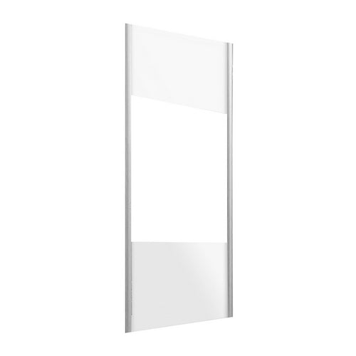 Parete fissa in vetro temperato serigrafato da 6 mm e profilo cromato. Tolleranza riducibilità 2 cm. Altezza 190 cm. Prodotto fabbricato conforme ai standard EN 14428:2004.
