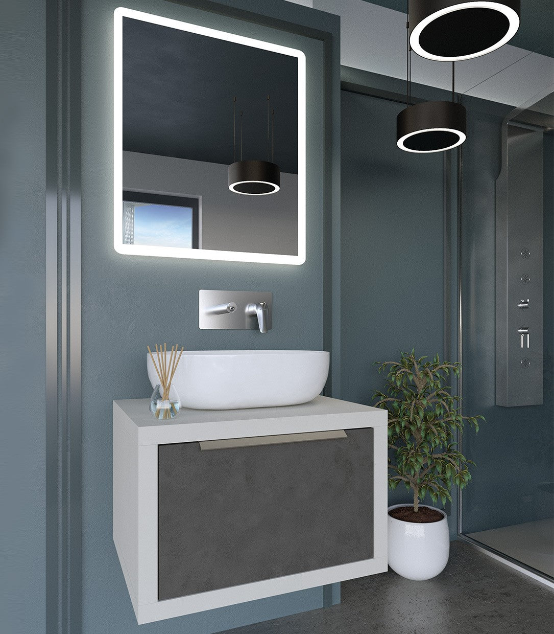 MOB155 Consolle sospesa a giorno QUBO 60, Cemento Grigio Cielo