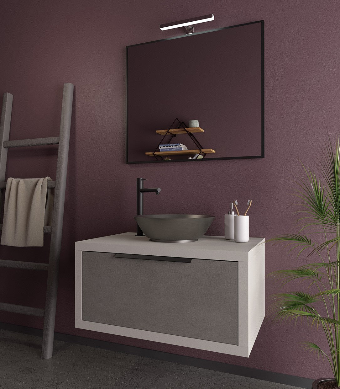 MOB177 Consolle sospesa a giorno QUBO 80, senza cassetto, Cemento Grigio Cielo