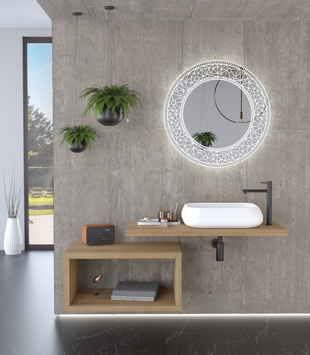 MOB636 Specchio CHIC 70 tondo con decori laser retroilluminati led