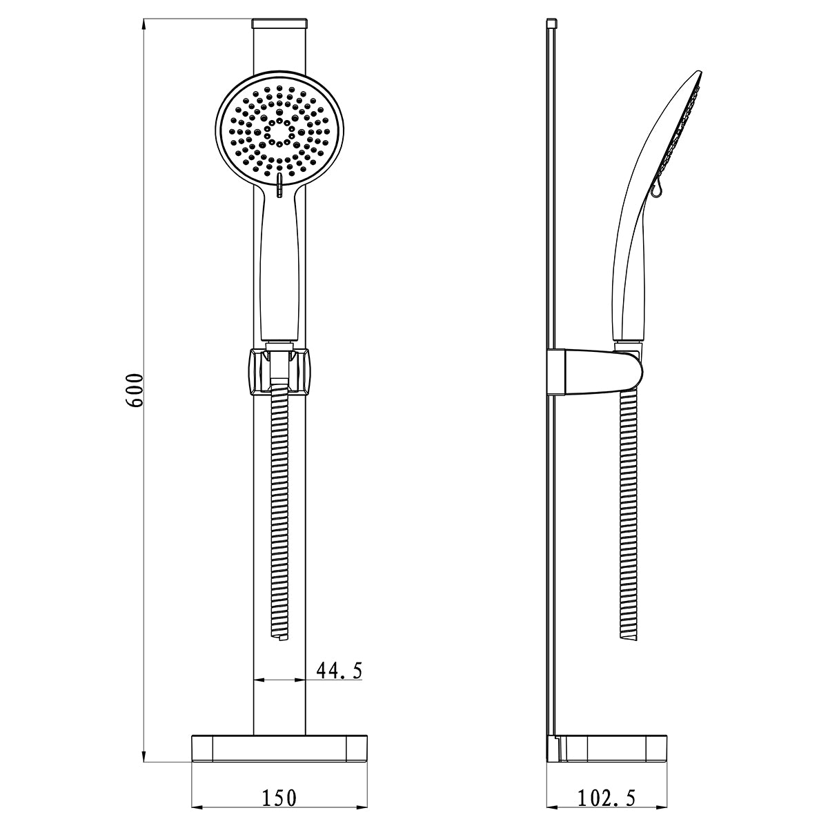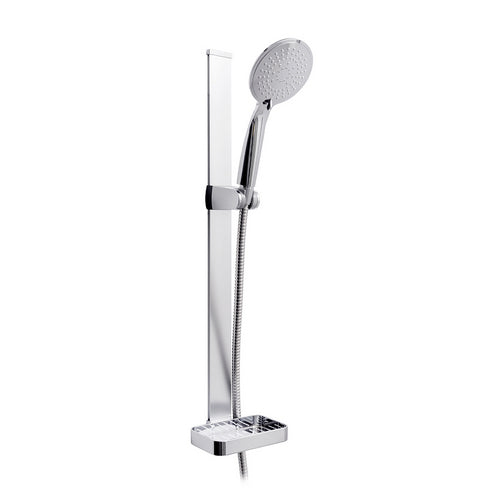 Saliscendi doccia magnetico composto da: doccetta 5 funzioni in ABS, water saving, diametro 110 mm, asta piatta in alluminio. Supporto magnetico in ABS scorrevole. Laccio doccia lungh. 150 cm, con porta sapone. Altezza totale 60 cm, fissaggio con biadesivo incluso.