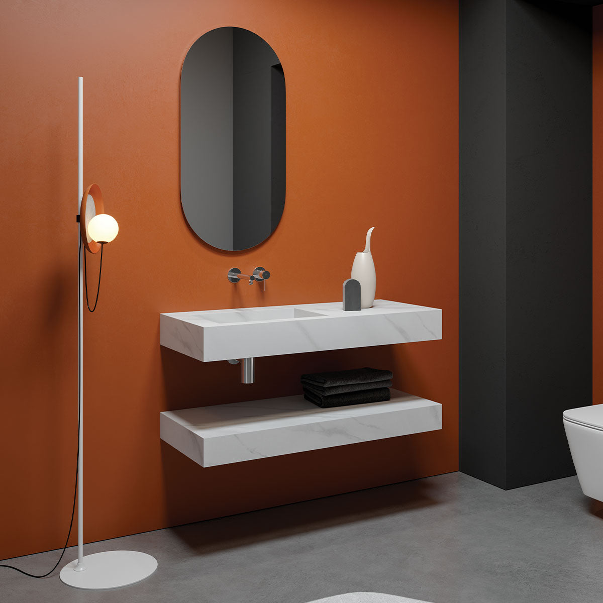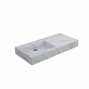 Lavabo 100 in pietra sinterizzata vasca sx Bianco venato senza foro rubinetteria (foro da praticare)