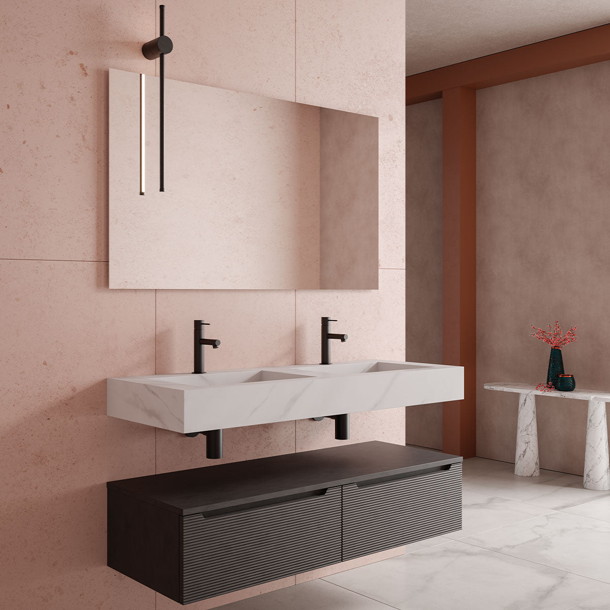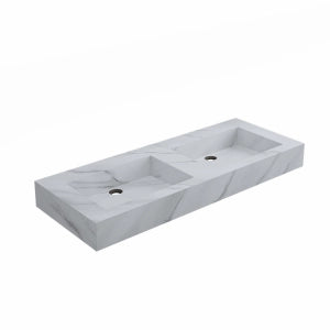 Lavabo 120 in pietra sinterizzata a 2 vasche Bianco venato senza fori rubinetteria (fori da praticare)