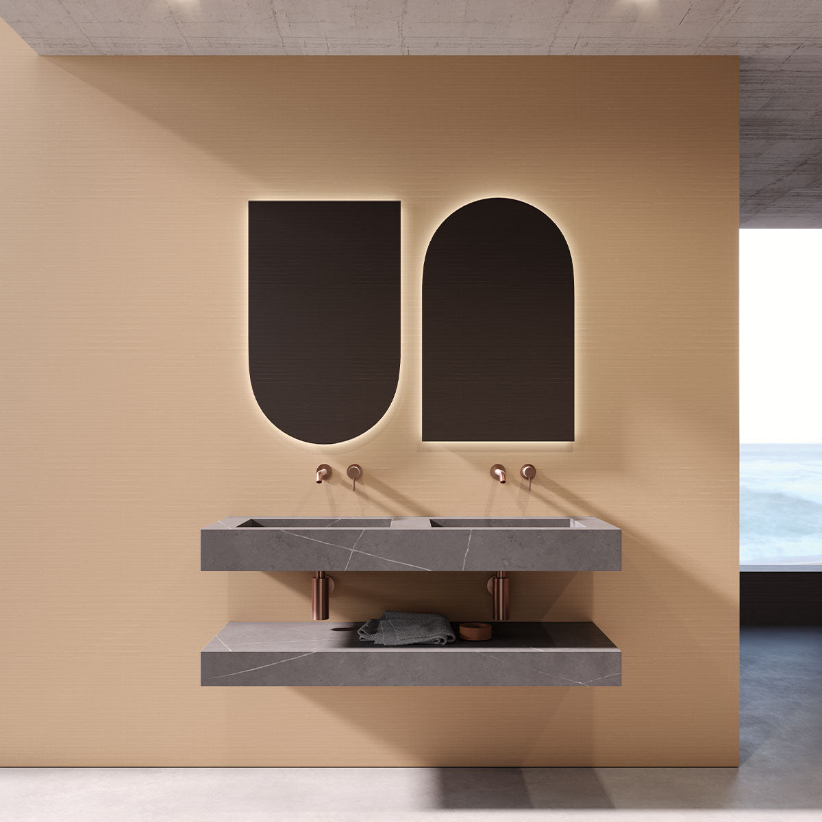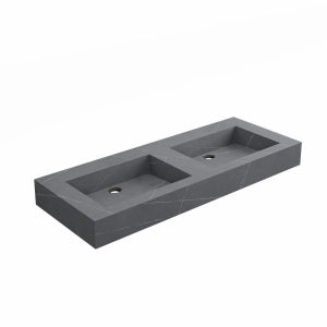 Lavabo 120 in pietra sinterizzata a 2 vasche Grigio venato senza fori rubinetteria (fori da praticare)