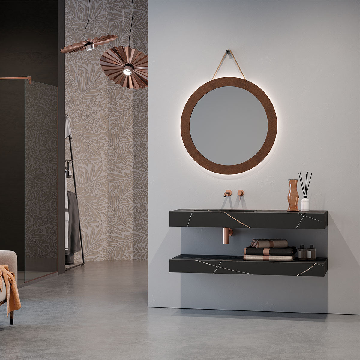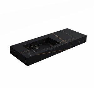 Lavabo 120 in pietra sinterizzata vasca SX senza foro rubinetteria Nero venato