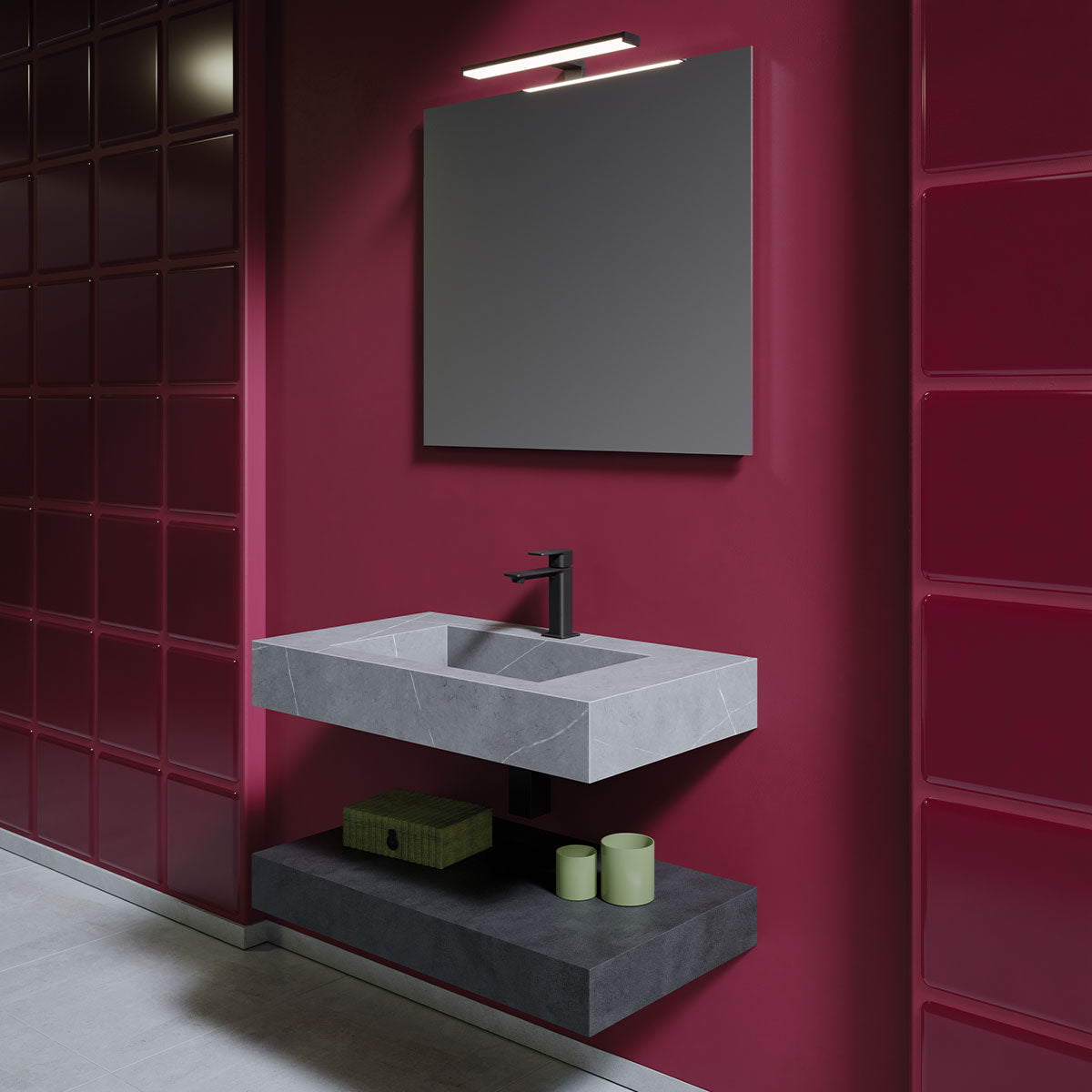 Lavabo STEIN 80 in pietra sinterizzata vasca centrale Grigio venato senza foro rubinetteria (foro da praticare)