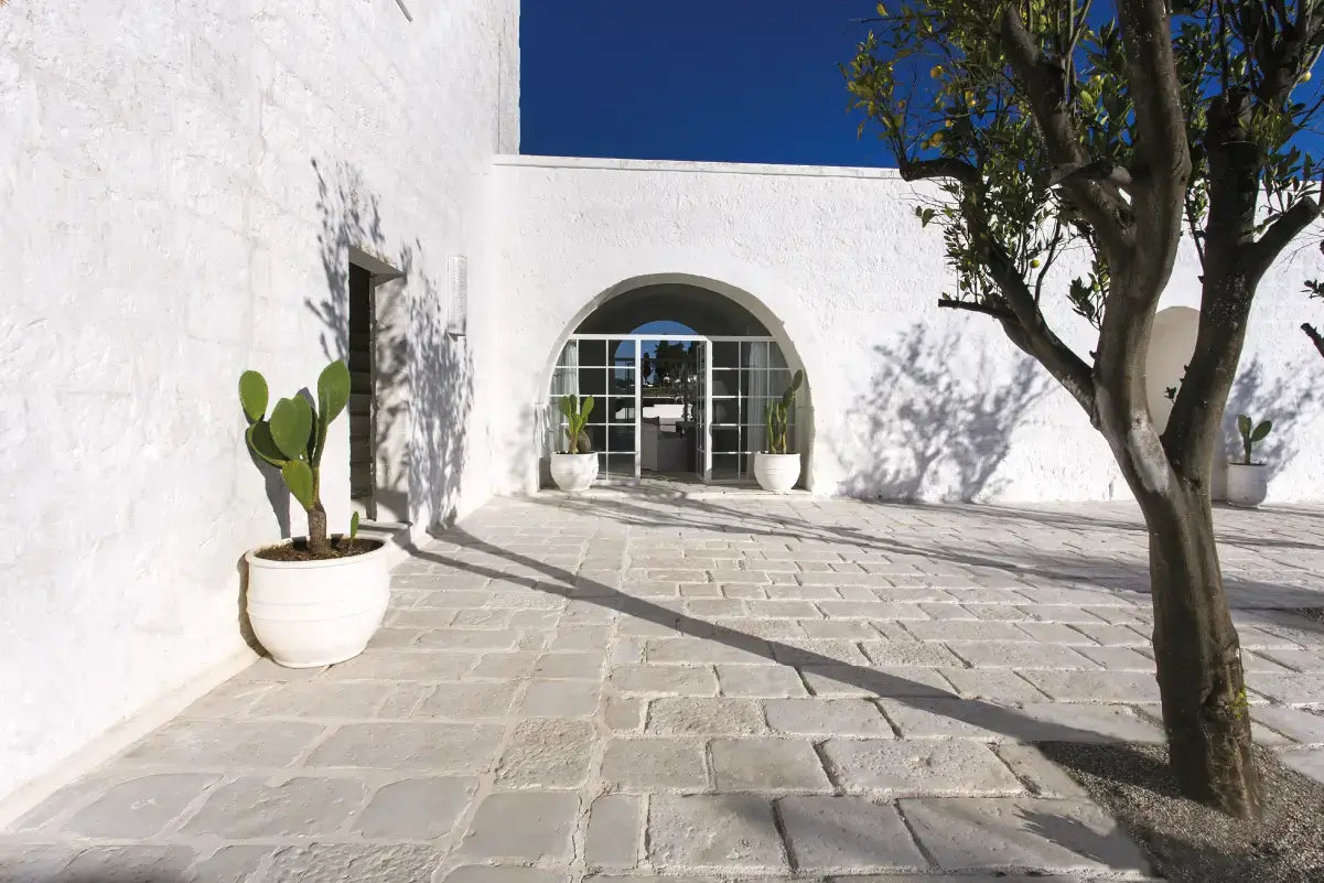 Vecchio Basolato è un pavimento in pietra ricostruita che riproduce i basoli di una masseria salentina del 1400.