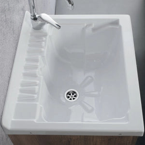 VSL133 Lavatoio MEDUSA 60x50 in ABS - L.60xP.50 Lavatoio in ABS completo di sifone e asse in legno, predisposto per rubinetteria monoforo laterale. Colore bianco lucido