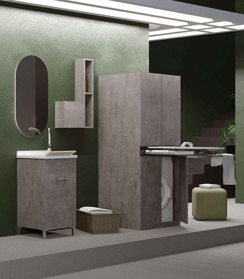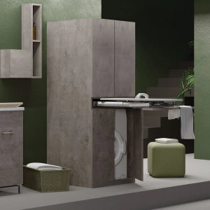 MOB962 Colonna 70 a 4 ante H.174  - L.70xH.174xP.70 per inserimento lavatrice nella parte inferiore, completa di asse da stiro estraibile. Pensile superiore con un ripiano interno. Ossido roccia